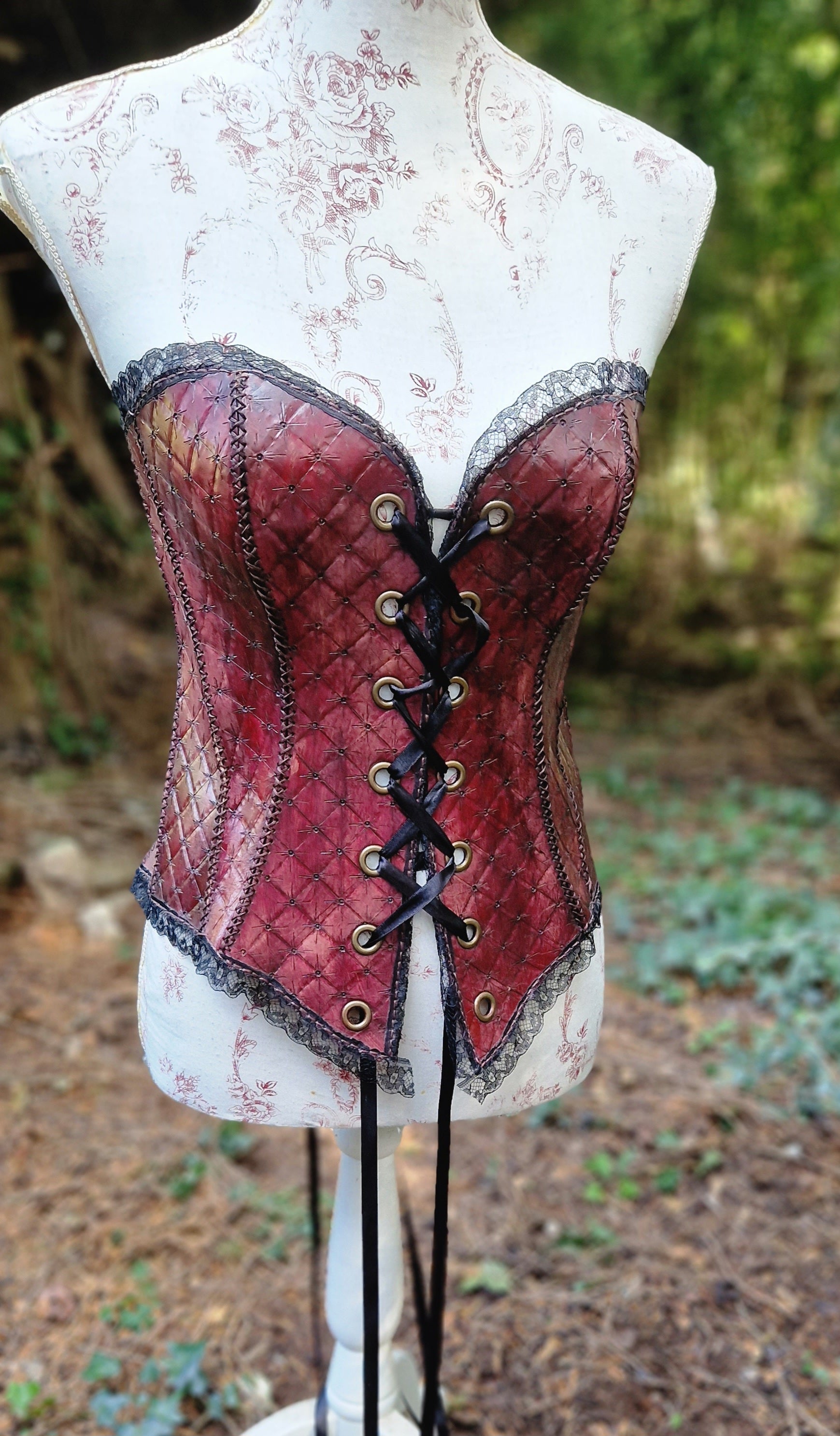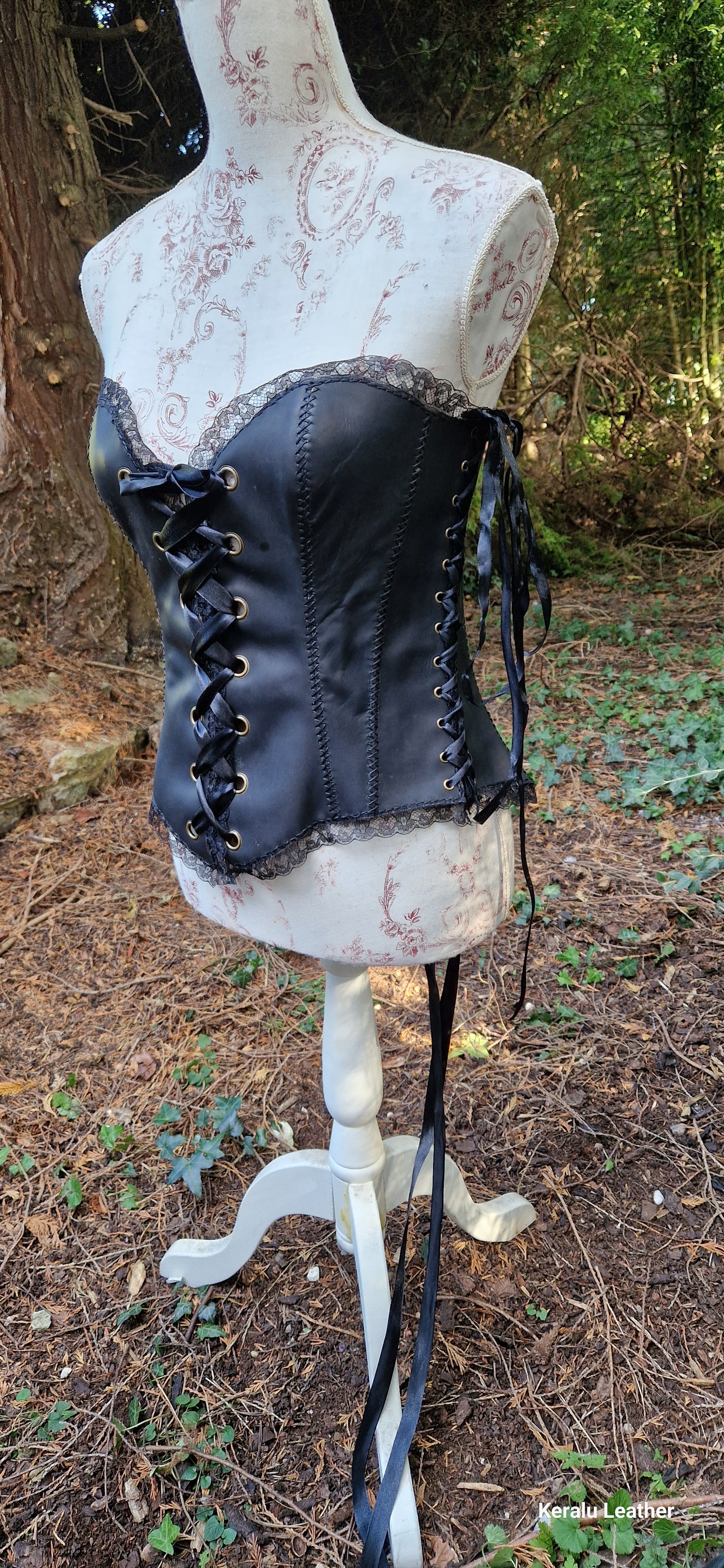 Corset, hand-tooled high quality leather with lace edging. A labour of love