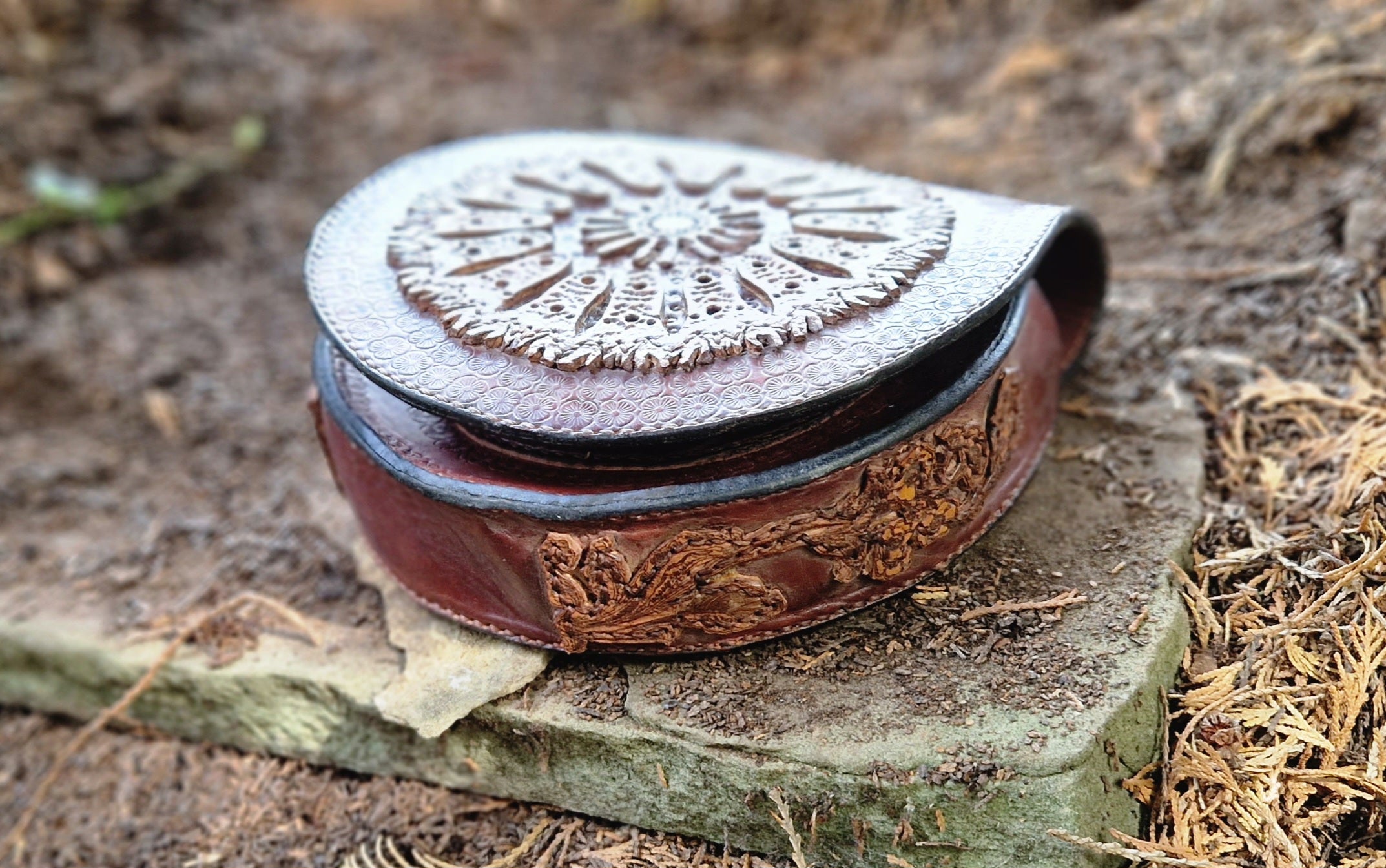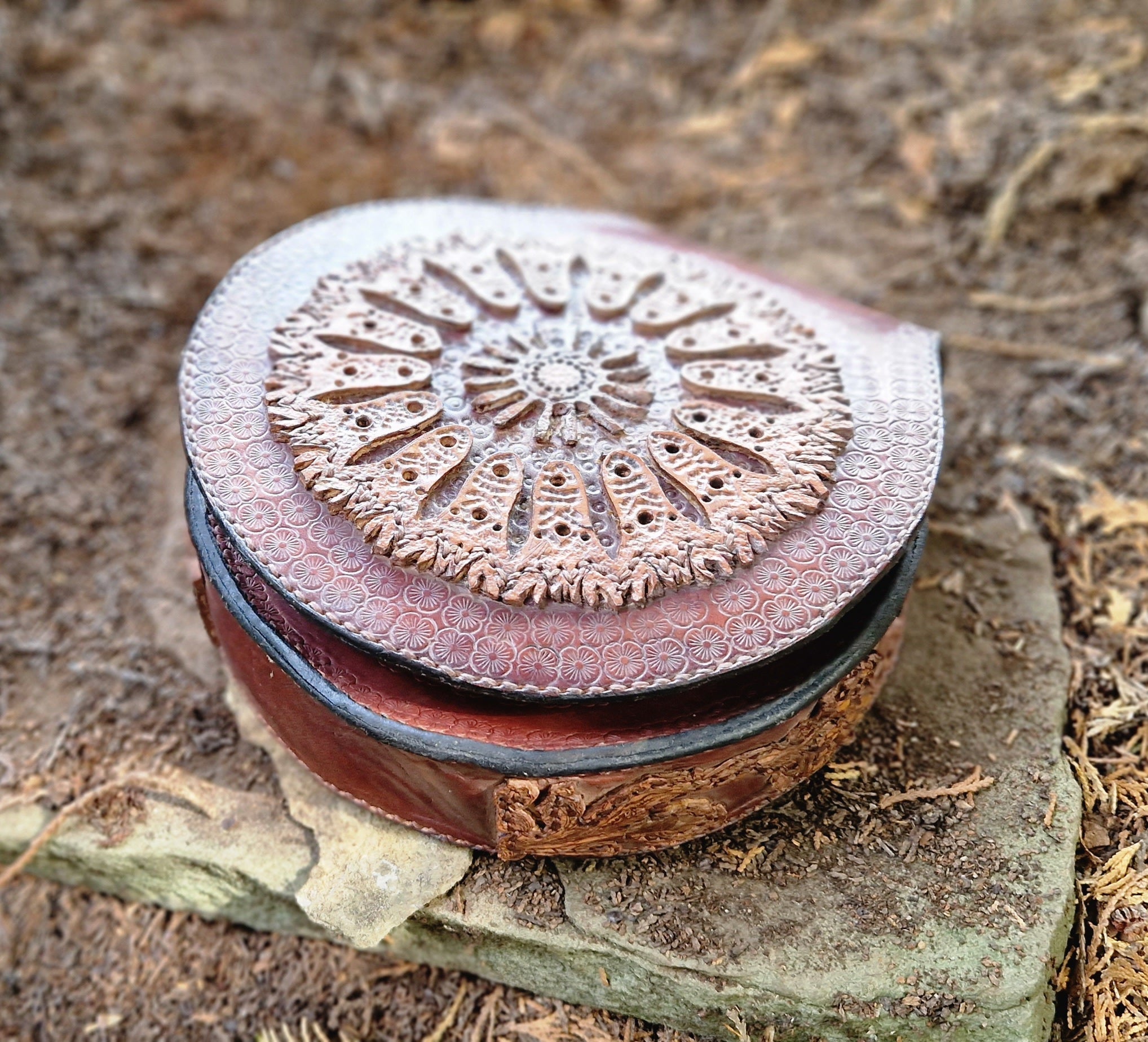 Carved leather saddlebag